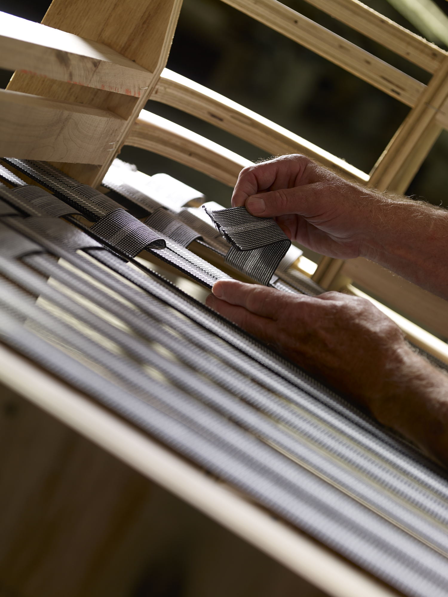 Ручной труд лежит в основе обивочного производства WELBI. Мастера обивочного цеха умеют работать с деликатными материалами и готовы выполнить работу любой сложности по обивке мебели, обтяжке потолков и стен помещений.